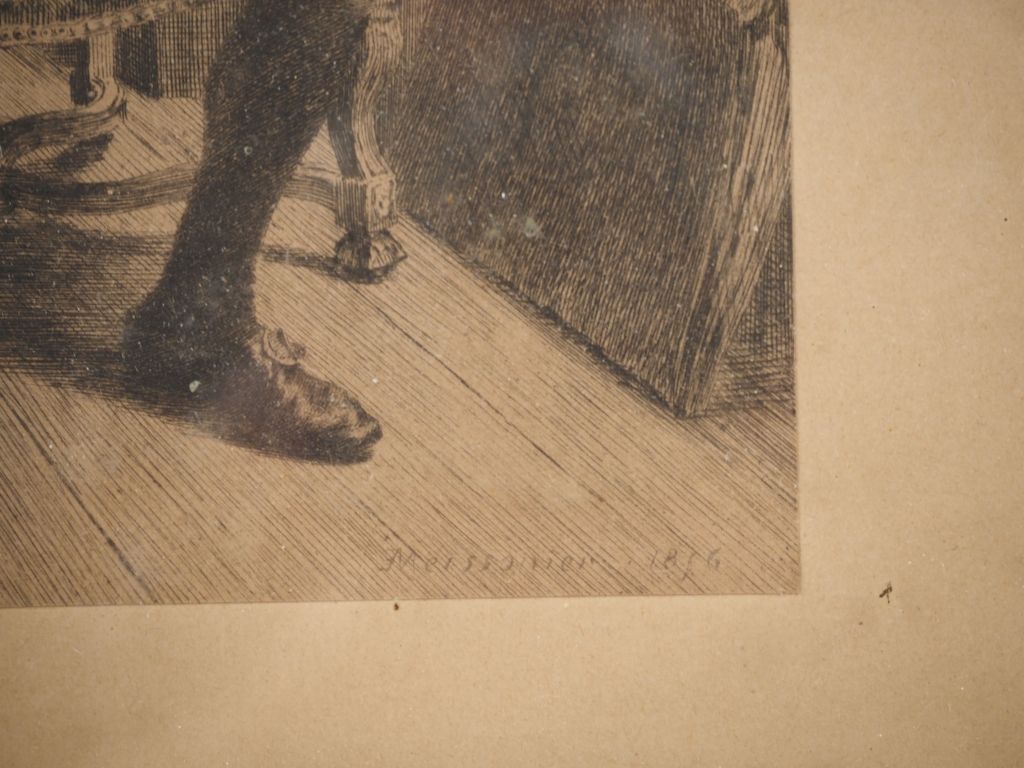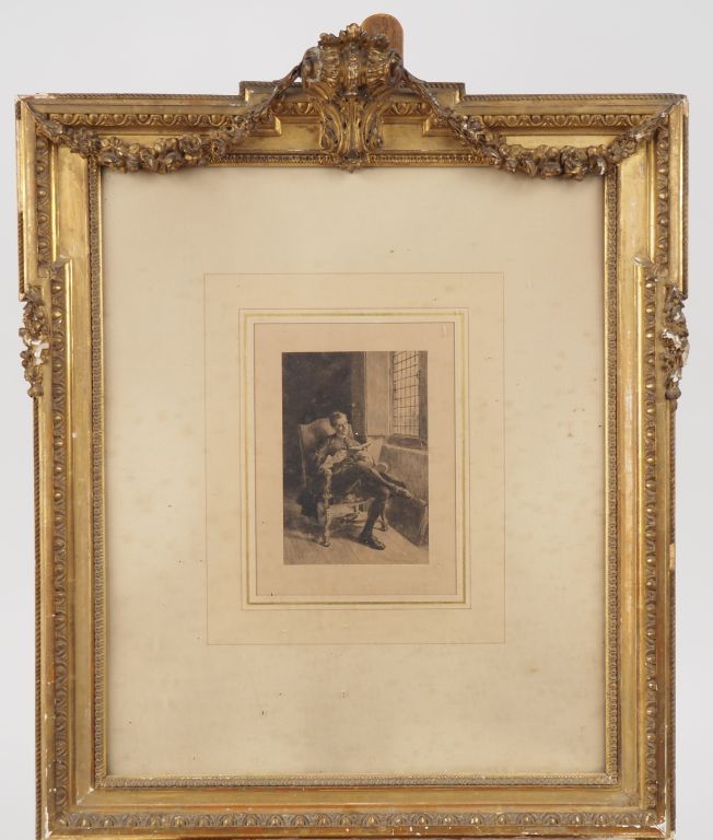 MEISSONNIER. Gravure en noir "la lecture" dans un cadre de style Louis XVI en bois et stuc doré. Dim. du cadre : 62,5 x 50 cm