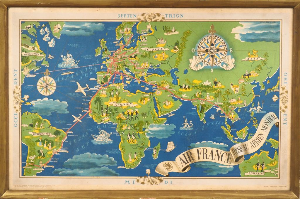 Lot de Planisphère pour les vols d'Air France d'après Lucien BOUCHER. au prix de 150 à 250 € en vente aux enchères par l'hôtel des ventes Primardeco