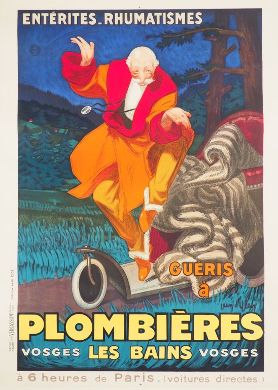 PLOMBIÈRES LES BAINS. Affiche par Jean d’Ylen, imprimerie Vercasson, 1931. Condition : A+ Entoilée. Dim. : 107x77 cm.
