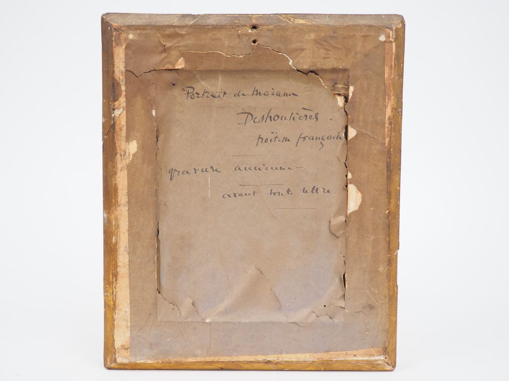 " Portrait de Marianne Deshoulières, poétesse française » Gravure en couleurs. Dans un joli cadre XIXème à palmettes. Dim. du cadre : 29 x 24 cm