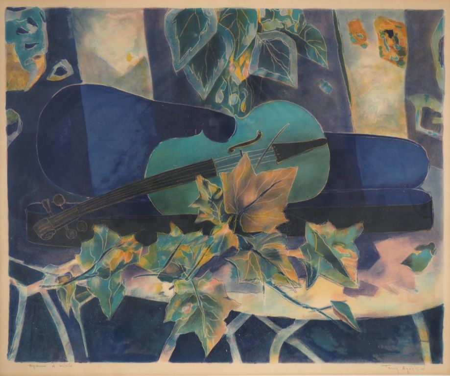 Tony AGOSTINI. "nature morte au violon" Lithographie contresignée en bas à droite.