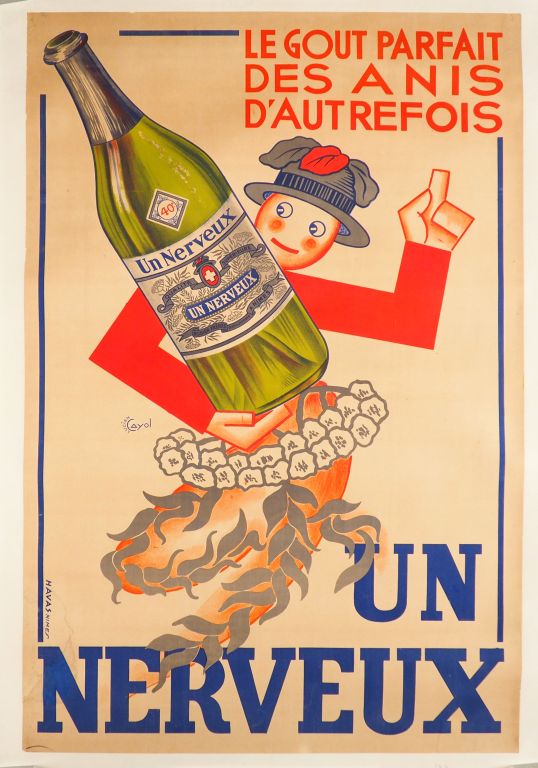 UN NERVEUX. Affiche par Lucien Cayol, imprimerie Havas Nimes, circa 1950. Condition : B+ Entoilée. Dim. : 120x80 cm.