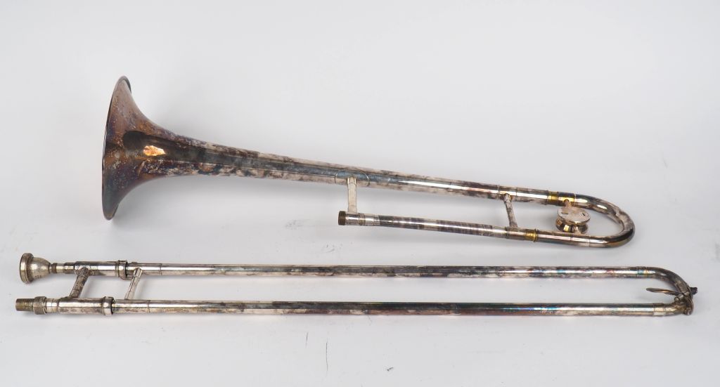 Lot de Antoine COURTOIS à Paris. Trombone n°12681 en métal argenté, dans son au prix de 60 à 80 € en vente aux enchères par l'hôtel des ventes Primardeco