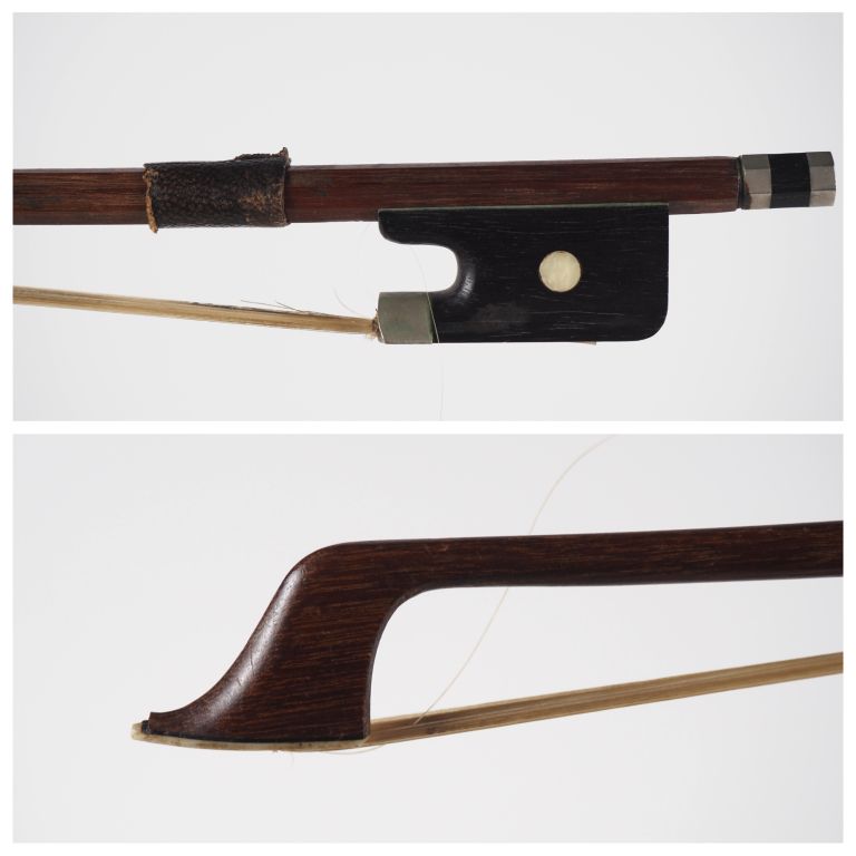 Archet de violoncelle en bois exotique 3/4 A restaurer, plaque de tête, mèche et garniture et nacre à refaire Expert : Atelier Dalle Carbornare