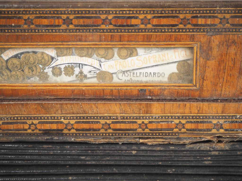 Bandoleon italien en bois à décor en marqueterie. Signé Castelfidardo.