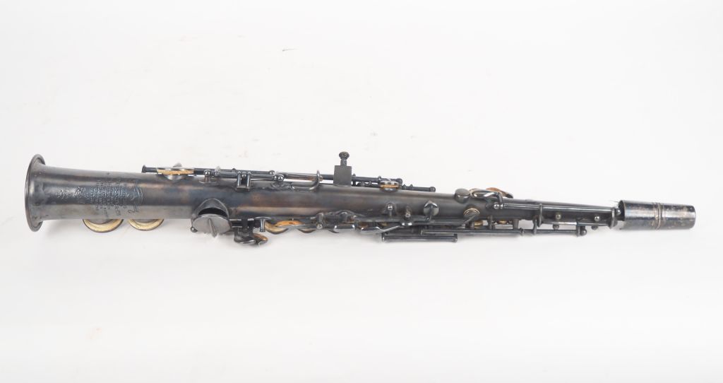 Lot de COUESNON Cie. Saxophone en métal argenté. Signé. H. 57 cm. au prix de 100 à 150 € en vente aux enchères par l'hôtel des ventes Primardeco