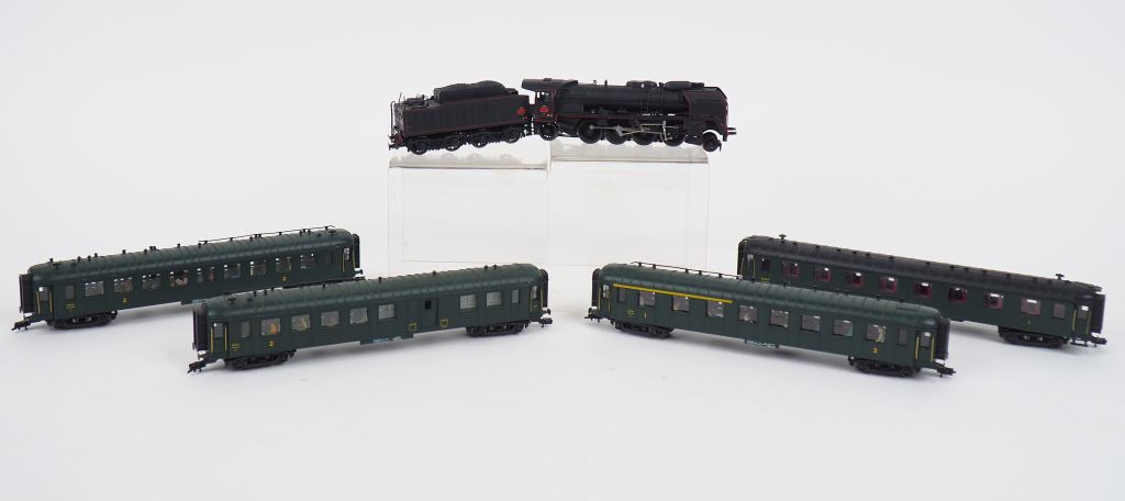 Lot de matériel roulant HO Jouef dont locomtive 141 P et 4 voitures voyageur ( bel état d'usage)