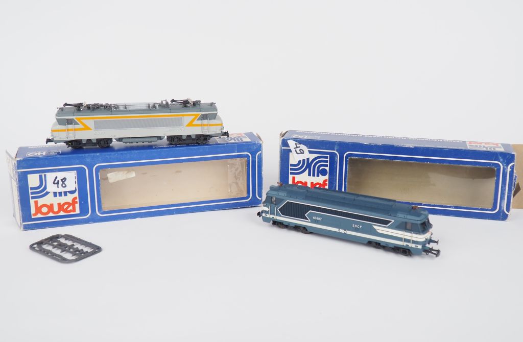 Matériel roulant en HO de marque jouef lot de 2 motrices en boite défraîchies dont BB67407 SNCF diesel bel état et BB 22230 electrique bel état