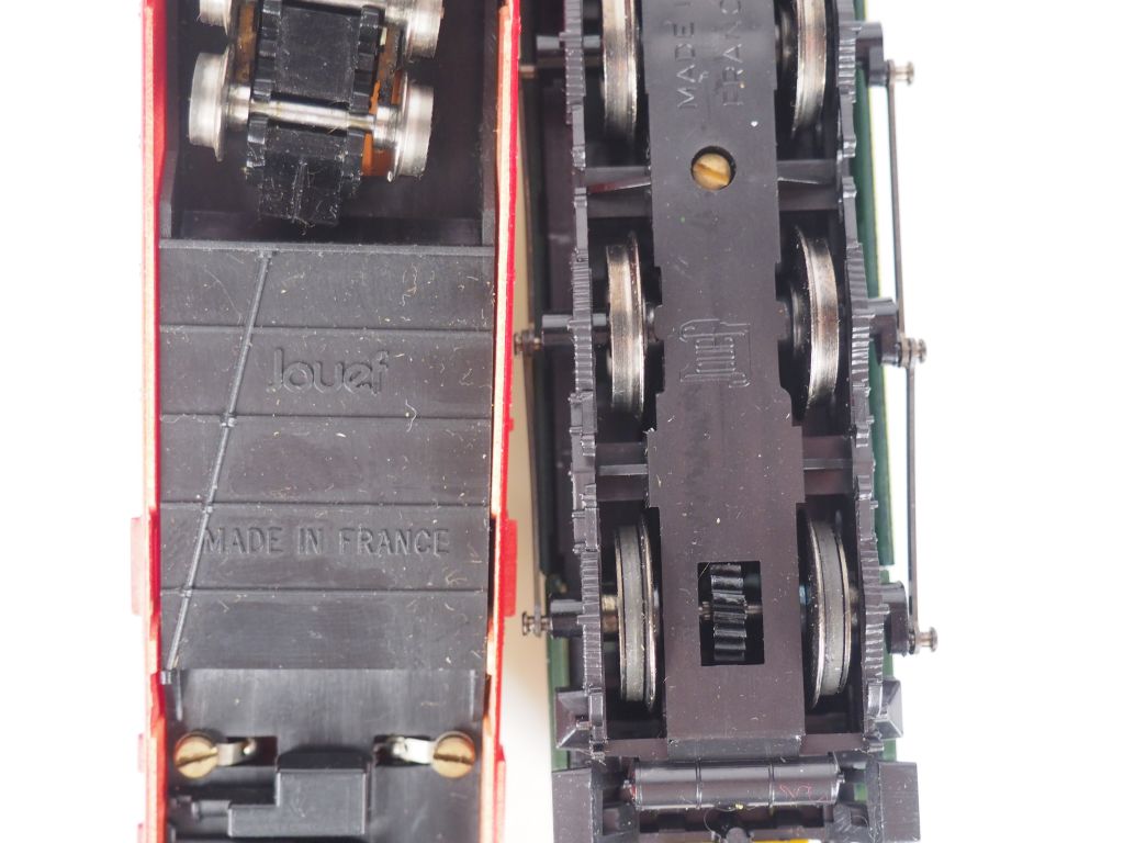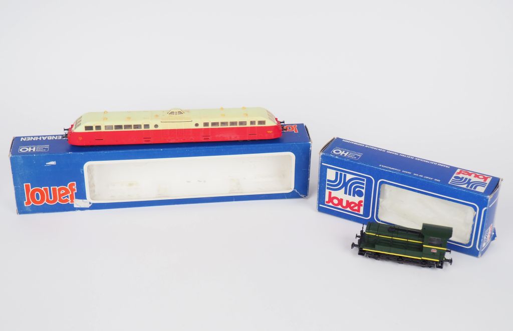 Matériel roulant en HO de marque jouef lot de 2 motrices en boite défraîchies dont autorail Bugatti bel état d’usage et loco tracteurs SNCF C 61 004 référence 8503 bel état