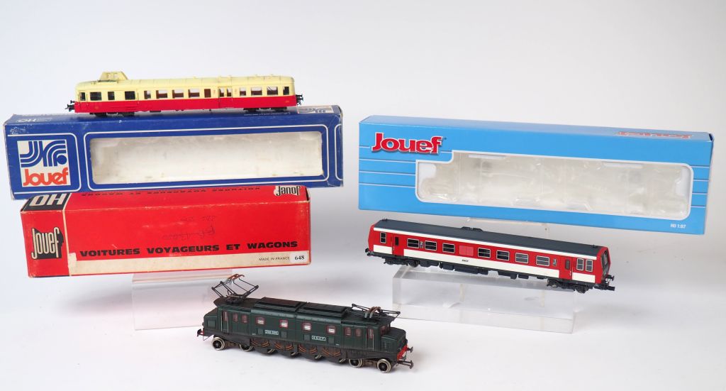 Matériel roulant HO de marque JOUEF lot de 3 motrices dont : autorail HJ2203 en Boite d’origine, Picasso, et 2D2 SNCF rangée dans des boites différentes Be d’usage