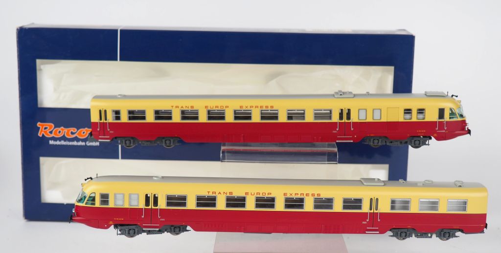 Matériel roulant Ho ROCO comprenant autorail diesel FS 442/448201 rouge et crème très bel état proche du neuf