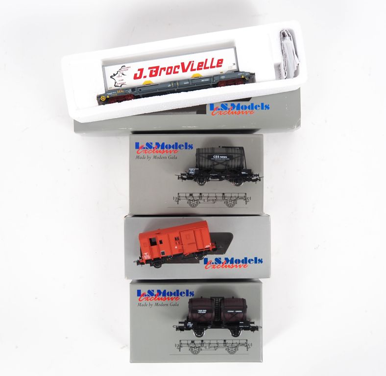 Matériel roulant LS Models Ho lot de 4 wagons dont 30551-30556-90011-30296 dans leurs boites TBE d’usage