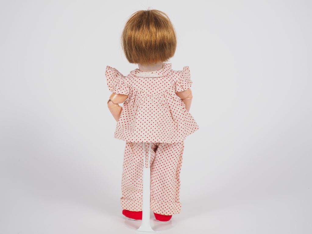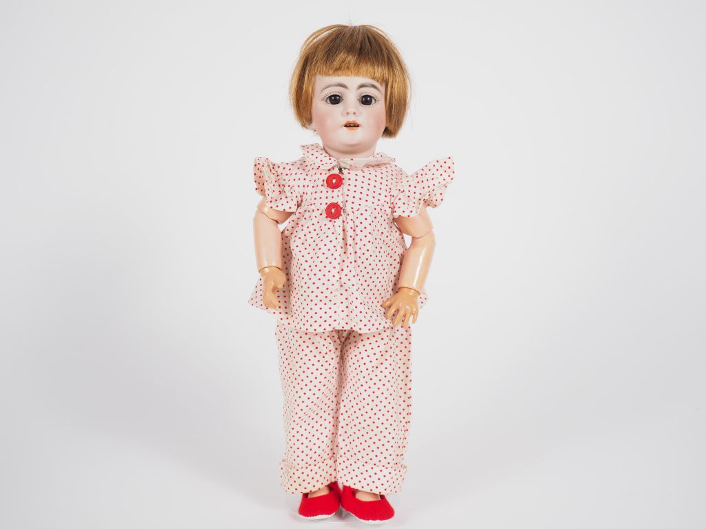 Poupée allemande de fabrication Simon Halbig tête porcelaine moule 1009 bouche ouverte yeux basculants bruns perruque blonde de style corps composition articulé de type français. Circa 1910-1912. Taille 31 cm. Bon état. Vêtement Gautier-Languereau « grâce matinée » de 1953 mains repeintes