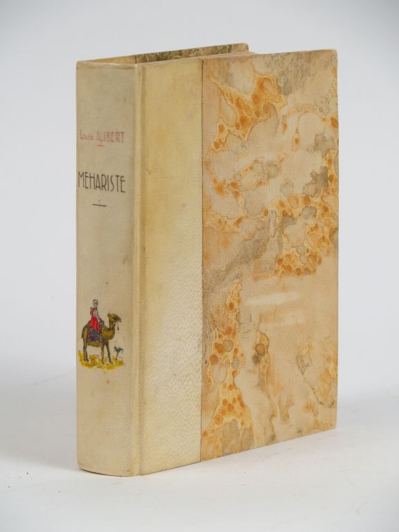 ALIBERT (Louis). Méhariste 1917-1918. Bordeaux, Editions Delmas 1936. in-8. 1/2 vélin, titre manuscrit et vignette au dos, couv. illustrée en couleurs cons. (Rel. de l'époque). Edition originale. Ex. num. sur Alfa-mousse. Envoi a.s. Qqs rouss. en début et en fin de vol.