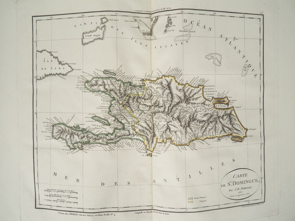 [ATLAS]. MALTE-BRUN - MENTELLE. ATLAS DE LA GÉOGRAPHIE UNIVERSELLE ancienne et moderne, mathématique, physique, statistique, politique et historique des cinq parties du monde. Paris, Desray, 1816. In-folio ½ basane maroquinée vermillon à coins, dos lisse muet (Reliure XXe) , (2) ff. de faux-titre et titre, III pp. de préface, (1) page de table des cartes, (1) f., 28 pages de notices, (1) f. d’errata, 48 cartes. ATLAS contenant 48 CARTES gravées sur vergé fort par Tardieu l’aîné sur les dessins de Poirson, exceptées celles de la carte de l’Europe, de l’Allemagne en 1816, la carte de la Gaule et celle de l’Océanie (dessinée par H. Brué). Les cartes sont montées sur onglets, dont un grand nombre à double-page, la plupart rehaussées à l’aquarelle : une jolie carte de l’Amérique du Sud et une autre de SAINT-DOMINGUE.