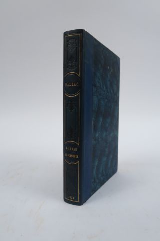 BALZAC ILLUSTRÉ. La peau de chagrin. Paris, Delloye, Lecou 1838. gd in-8. 1/2 chagrin bleu, dos long orné de 3 cadres de fil. dor. droits et courbes, rinceaux à froid, tr. marbr. (Rel. d'époque). Edition illustrée de vignettes gravées sur acier dans le texte. Bel exemplaire, frais, malgré qqs rares rouss. éparses.
