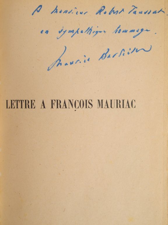 BARDÈCHE (Maurice). Lettre à François Mauriac. Paris, la Pensée Libre 1947. in-12, 195 pp. 1/2 basane rouge, premier plat de couv. cons. Edition originale avec un envoi a.s.