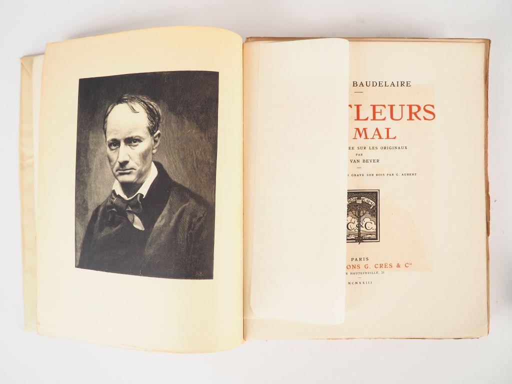BAUDELAIRE (Charles). Les Fleurs du Mal. Edition publiée sur les originaux par Ad. Van Bever. Portrait de l'auteur gravé sur bois par G. Aubert. Paris, Crès 1923. in-4, broché 1/800 sur gd vélin de rives.