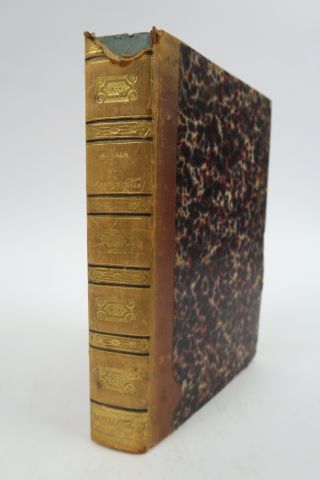 BEAUMARCHAIS. Œuvres complètes, précédées d'une notice sur sa vie et ses ouvrages par Saint-Marc Givardin. Paris, Furne 1835. 1/2 veau havane, décor romantique dor. (Rel. d'époque). Edition illustrée de 4 gravures h.-t. d'après Tony Johannot. Texte sur 2 colonnes. Coiffe sup. arrachée, dos éclairci.