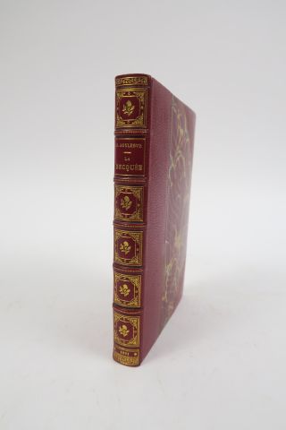 BOYLESVE (René). La Becquée. Roman. Paris, Editions de la Revue Blanche 1901. in-12. 1/2 maroquin rouge à coins, fleur. et caissons dor., tête dor., couv. et dos cons. Edition originale. 1/5 sur papier japon, avec un portrait de l'auteur par Jean Veber. Bel exemplaire.