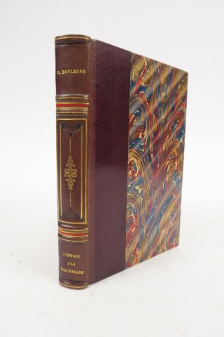 BOYLESVE (René). L'Enfant à la balustrade. Paris, Calmann Levy 1903. in-12. 1/2 chagrin havane, dos à 6 nerfs, fil. dor. et listels mosaïqués en rouge, tête dor., couv. et dos (Rel. d'époque). Edition Originale. Bel exemplaire joliment relié.