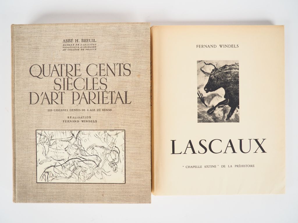 BREUIL (Abbé H.). Quatre cents siècles d'Art Parietal. Les cavernes orné de l'Age du Renne. Réalisation Fernand Windels. Montignac, Centre d'Etude et de documentation préhistorique 1952. in-4, 413 pp.-3ff. Edition originale tirée à 550 ex. 1/500 sur hélioalfa, avec un envoi a.s. de l'auteur. Joint : -WINDELS (Fernand). Lascaux "Chapelle Sixtine" de la Préhistoire. Préface de Leroi-Gourham. Intr. de l'abbé Breuil. Montignac, C.E.D.P 1948 Nombr. Illustrations.