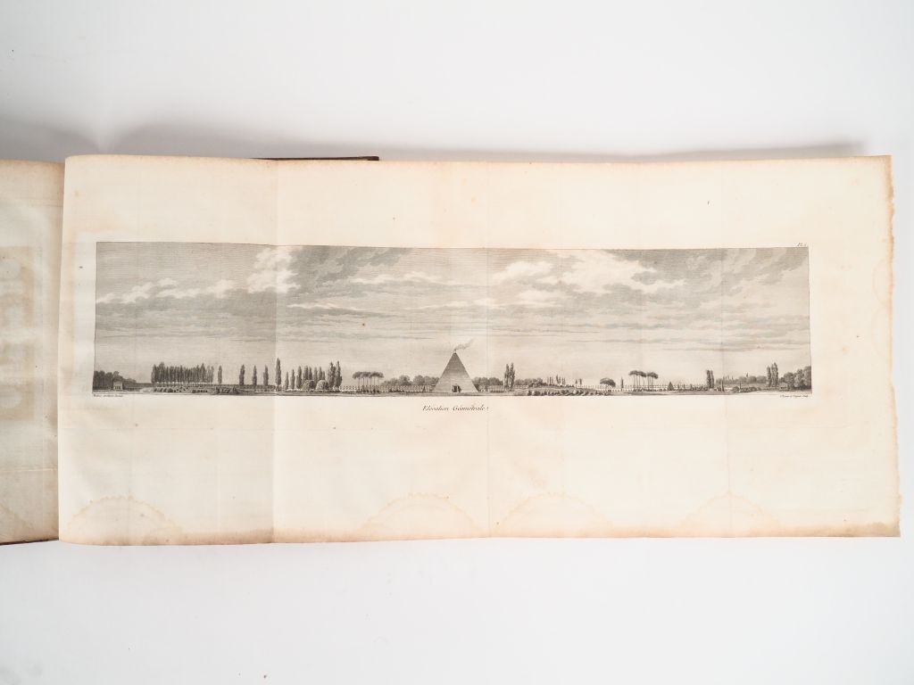 CAMBRY (J.). RAPPORT SUR LES SÉPULTURES, présenté à l’administration centrale du département de la Seine. P., Didot l’ainé, an VII [1799]. Grand in-4 veau ½ vélin ivoire, dos lisse, titre frappé en noir (Reliure de l'époque) , (1) f. manuscrit monté sur onglet, (2) ff. de faux-titre et titre, II-83 pp., 9 pl. ÉDITION ORIGINALE. 9 PLANCHES dépliantes gravées. Ouvrage truffé d’une LETTRE AUTOGRAPHE SIGNÉE [Lauger ?] à en-tête gravé du « Département de la Seine », contresignée par l’auteur.