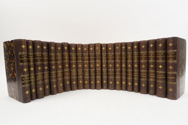 CHATEAUBRIAND (Vicomte de). Œuvres complètes. Paris, Pourrat, Furne 1832. 22 vol. in-8. 1/2 chagr. havane, fleur. et pointillés dor. sur les nerfs, caissons à froid (Rel. d'époque).
