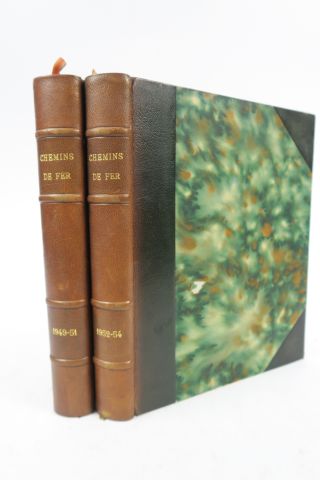 [CHEMINS DE FER]. Revue de l'Association des Amis des Chemins de Fer. De janvier/février 1949 à novembre/décembre 1954. 6 années complètes reliées en 2 vol. in-4. 1/2 chagr. olive à coins, couv. de livraison cons. (Rel. d'époque). Publication abondamment illustrée en noir.