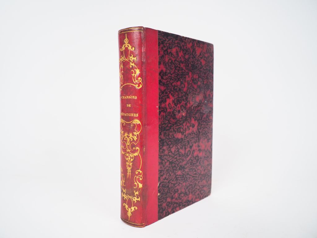 DESAUGIERS. Chansons et poésies. Edition elzévirienne. Paris, Garnier 1842. in-12. Rel. d'époque demi-veau cerise, décor rocaille doré. Portrait de 7 vignettes h.-t. (papier bruni aux planches hors-texte).