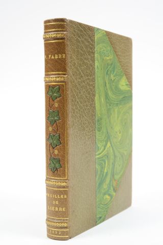 FABRE (Ferdinand). Feuilles de lierre. Paris, Charpentier 1853. in-12. 1/2 maroquin olive à coins, roulettes et fil. dor., guirlande de feuilles de lierre mosaïquée, tête dor., couv. et dos cons. (Rel. postérieure). Edition Originale. Envoi a.s. Recueil de poésies et premier livre de Ferdinand Fabre. Vicaire cite un premier recueil paru confidentiellement à Montpellier en 1848.