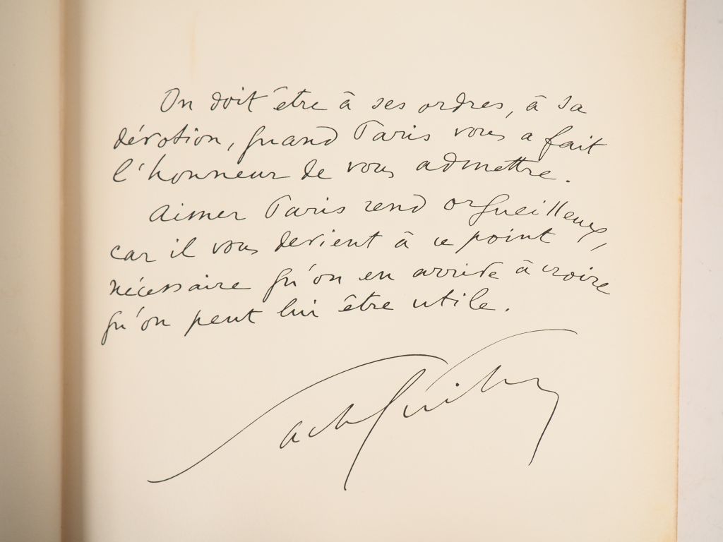 GUITRY (Sacha). Si Paris nous était conté.. Paris, Raoul Solar 1956. gd in-4. Reliure éditeur simili maroquin rouge (Engel). Edition originale illustrée de portraits, dessins, plans et gravures reproduits en hors-texte dont 4 mises en couleurs. Joint une lettre autographe du sculpteur Emmanuel Fremiet (1824-1910)