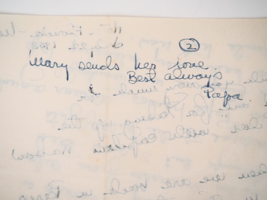 HEMINGWAY (Ernest). LETTRE AUTOGRAPHE SIGNÉE « papa ». Madrid, 22 juillet 1953. Une page grand in-4 avec enveloppe à l’adresse de Finca Vigia, maison d’Hemingway à San Francisco de Paula à Cuba. AFFECTUEUSE LETTRE adressée à Roberto HERRERA SOTOLONGO, photographe et secrétaire d’Ernest Hemingway. Amis de longue date, les deux hommes s’étaient rencontrés à Cuba pendant la seconde guerre mondiale. Roberto Herrera était espagnol et fuyait alors le régime totalitaire de Franco. Il considéra l’écrivain américain comme un second père. « Dear Monstruo, Thank you very much for forwarding the mail and for taking up the things of the Pilar with Captain Rakow at the Embassy. / When we are back in Paris the first week in August will send a check to cover any expenses you have had at the Finca. / Glad to hear everything is well at the Finca and hope everything goes well with you and your family. Please give them my best and best to Feo. / Please tell Juanito Dunabeitia I will see his mother and give her the fountain pen which I carried away by mistake at the Floridita. It is Juanito’s pen. Give my best to all the boys there. I just missed seeing Pedrico in Pamplona. He was on an excursion from Cuba that was passing through. But I saw Paco Echauri and Saralequi at the bull fights also Aymar and Pepe Harios. Aymar Aguolin sent you his best. Pamplona was wonderful. / We have had a very interesting trip but Madrid is quite hot now. / Mary sends her love. / Best always / Papa ». La journaliste américaine Mary Welsh Hemingway (1908-1986) fut la 4ème et dernière femme d’Hemingway.