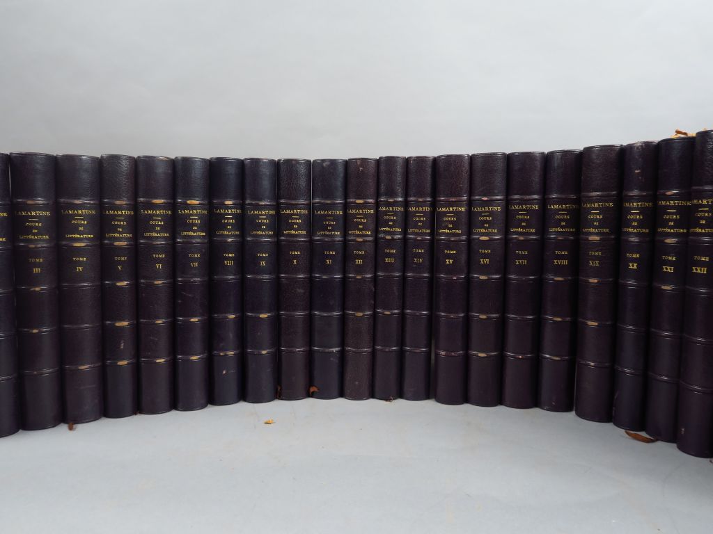 LAMARTINE (Alphonse de). Cours familier de littérature. Un entretien par mois. Paris, chez l'Auteur 1856-1869, 28 vol. gd in-8. 1/2 chagr. Prune à coins (Rel. de l'époque)