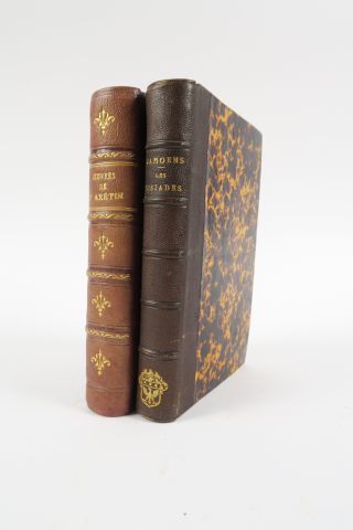 L'ARETIN. Œuvres choisies. Traduites de l'italien pour la première fois avec des notes par P. L. Jacob. Paris, Gosselin 1845. in-12, LXXI-387 pp. 1/2 chagr. havane, fleur. dor. (Rel. d'époque). Qqs rousseurs. Joint : – CAMOENS. Les Lusiades ou les Portugais. Trad. M. Millié, revue par M. Dubeux. Paris, Charpentier 1862. in-12. 1/2 chagr. brun, Armoiries dor. en pied. (Rel. d'époque).