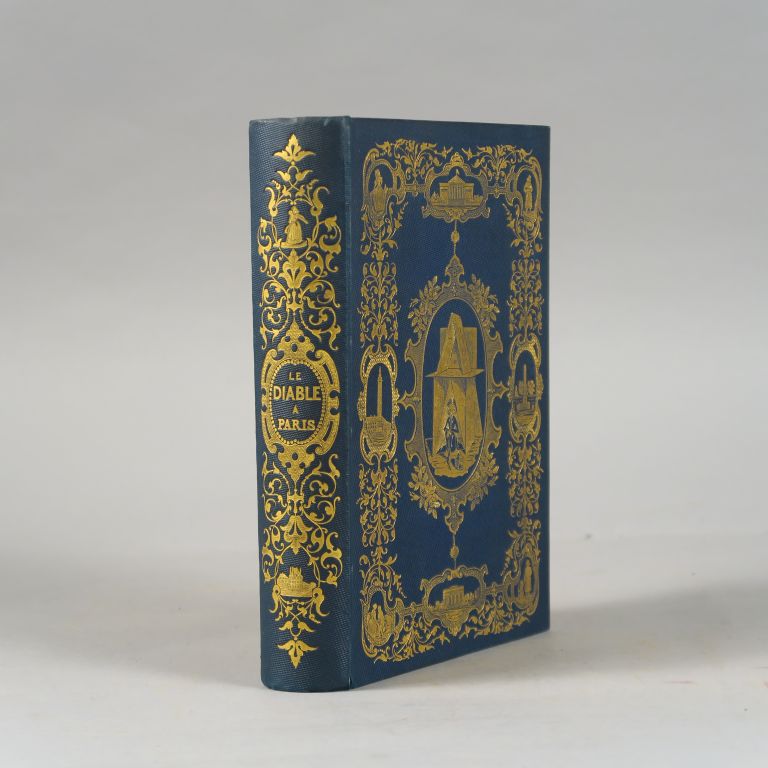 LE DIABLE A PARIS. Paris et les Parisiens. Mœurs et coutumes, caractères et portraits des habitants de Paris, tableau complet de leur vie privée, publique, politique, artistique, littéraire, industrielle … Illustrations par GAVARNI. Paris, Hetzel 1846. gd in-8. Percaline noire, belle plaque historiée frappée à l'or (Rel. de l'époque) Beau cartonnage romantique, frais