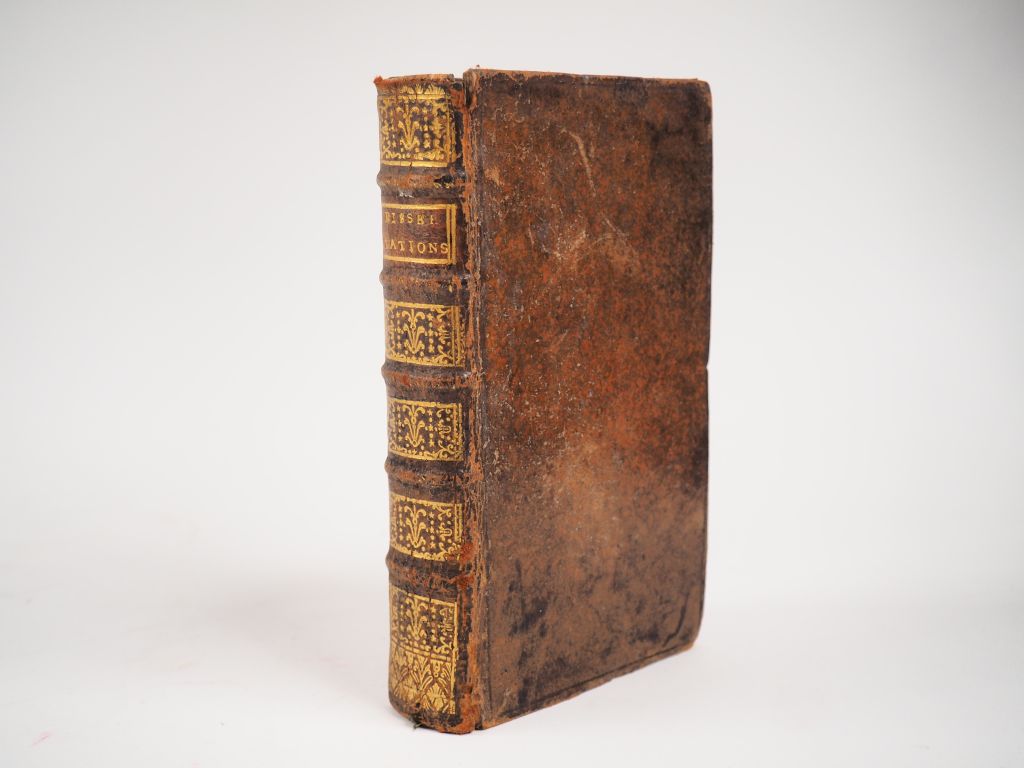 LEBEUF (Abbé Jean). DISSERTATIONS SUR L’HISTOIRE ECCLÉSIASTIQUE ET CIVILE DE PARIS, suivies de plusieurs éclaircissemens sur l’histoire de France. Paris, Lambert Durand, 1739. In-12 veau fauve marbré, dos à nerfs orné, pièce de titre, tranches rouges (Reliure de l’époque). Coiffe supérieure arasée. ÉDITION ORIGINALE de cet « excellent recueil, très recherché mais devenu rare » (Brunet). 10 figures en 9 PLANCHES et une CARTE dépliante. Deux autres tomes paraitront en 1743. ¶ Brunet, III-902