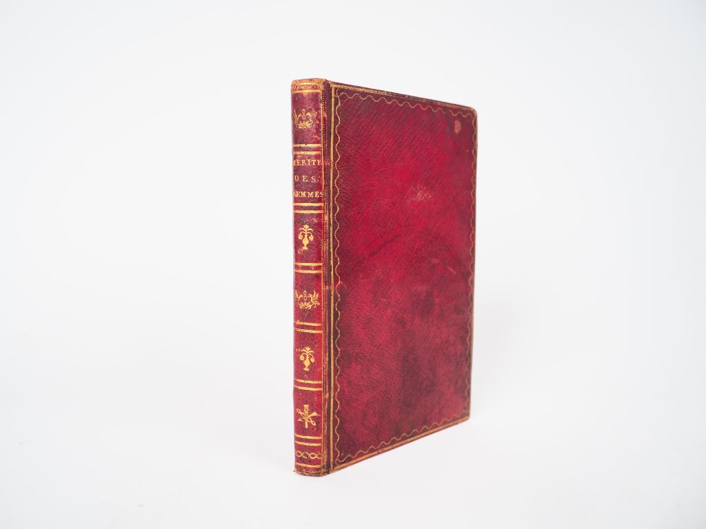 LEGOUVE (Gabriel). Le Mérite des femmes. Poème. Neuvième édition, revue et corrigée. Londres, Dulau et Cie 1804. in-16. . Rel. d'époque maroquin rouge, encadrem. dor. sur les plats, dos long compartimenté, roulette int. tr. Dor