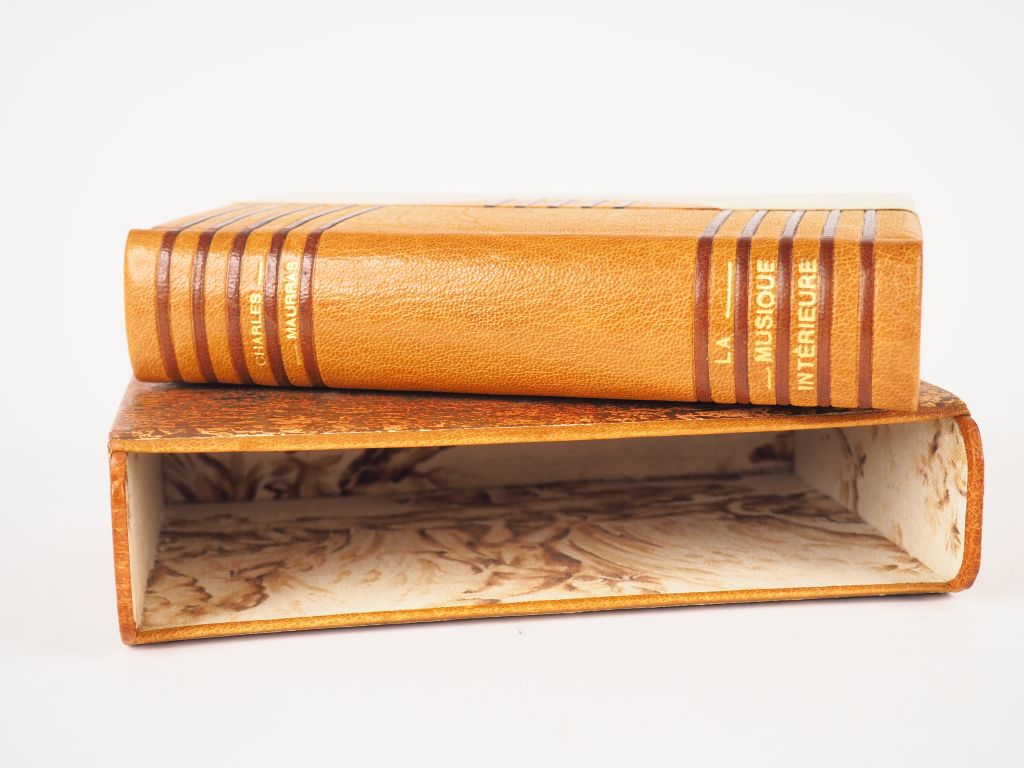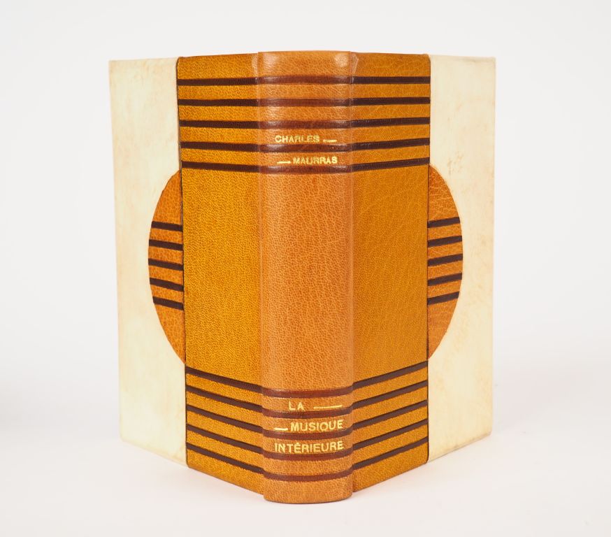 MAURRAS (Charles). La Musique intérieure. Paris, Grasset 1925. in-12. Reliure maroquin blond et listels de maroquin brun, vélin sur les plats, tête dor. couv. et do, étui bordé. Edition originale 1/450 ex. sur Hollande
