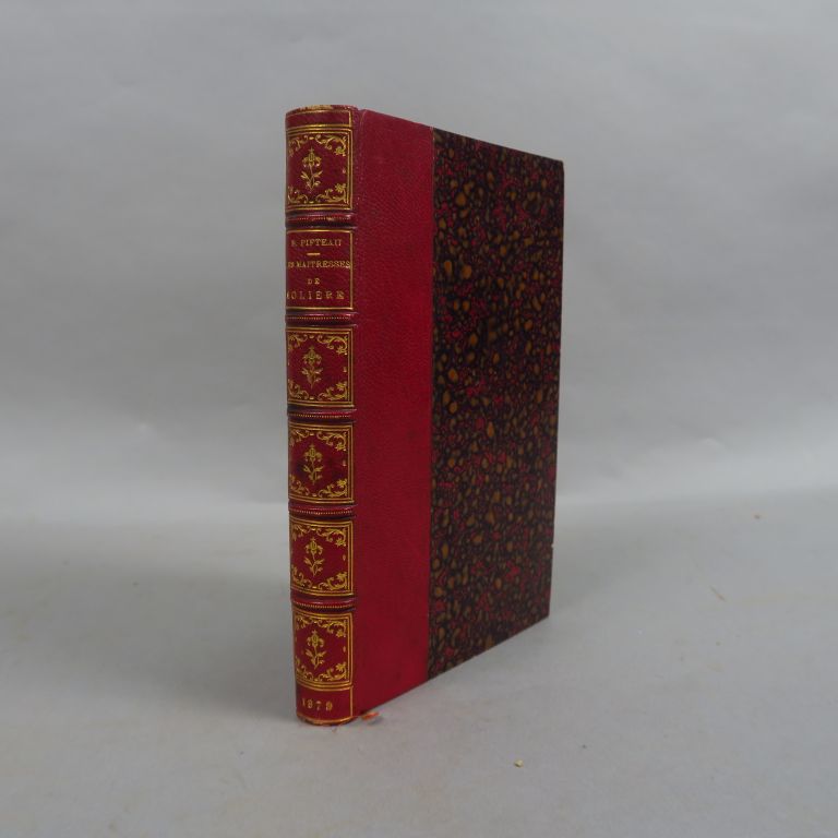[Molière]. PIFTEAU (Benjamin). Les maîtresses de Molière. Amours du grand comique. Leur influence sur son caractère et son œuvre. Paris, Léon Willem 1879. in-12. 1/2 chagrin rouge, caissons et fleur. dor., tête dor. (Rel. de l’époque). 5 eaux-fortes h.-t. Curiosité bibliophilique imprimée à 3 exemplaires sur peau de brebis (avant 500 ex. sur Hollande).