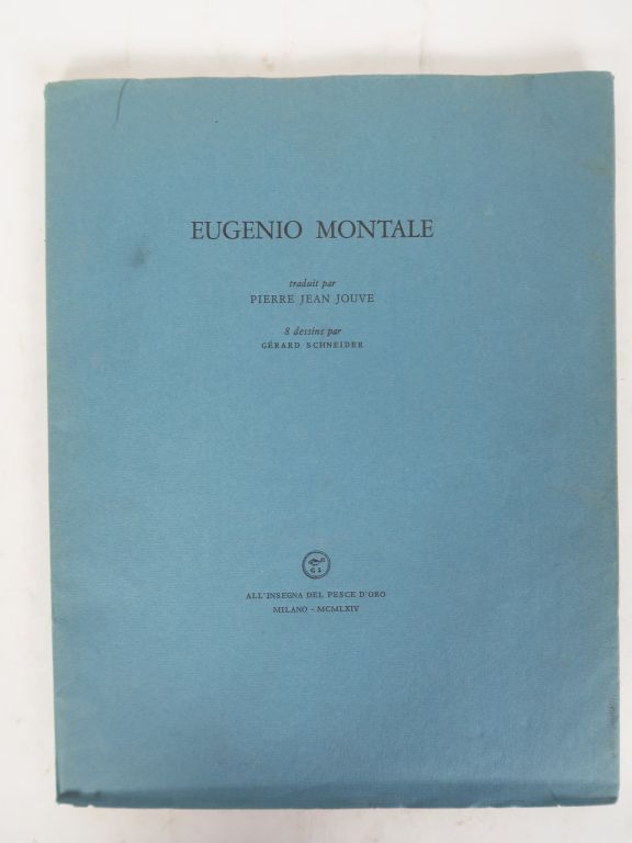 MONTALE (Eugenio) Trad. par Pierre Jean Jouve. 8 dessins par Gérard SCHNEIDER Milan, 1964, in-4 broché, litho originale signée (manque le faux titre)