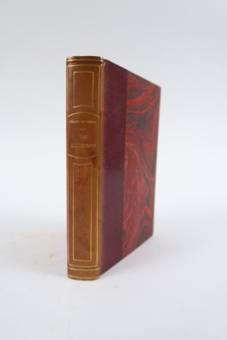 NERVAL (Gérard de). Les Illuminés. Les Faux Saulniers. Paris, Michel Levy 1868. in-12. 1/2 chagr. brun, dos lisse orné de fil. dor. en long, tête dor., couv. (Rel. du XIXe s.). Tome IV de la première édition collective des Œuvres de Nerval. Un portrait gravé de Nerval par E. Gerrais a été ajouté, enrichi du fac-similé de notes autographes, dont celle-ci : « Je suis l'autre ».