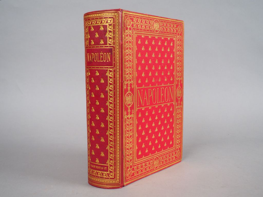 PEYRE (Roger). Napoléon Ier et son temps. Paris, Firmin-Didot 1888. Fort volume in-4. Reliure éditeur ½ chagrin rouge, décor impérial doré. 13 planches en couleurs et nombreuses illustrations en noir.