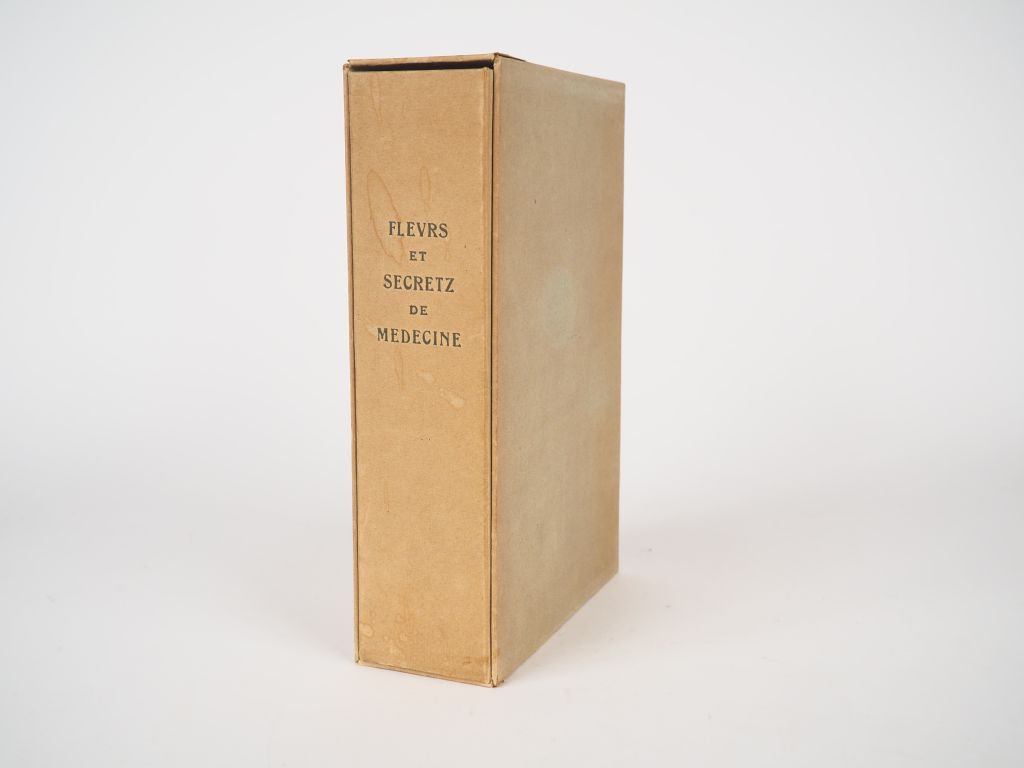 RAOUL DU MONT VERT (Maistre). Les Fleurs et Secretz de Médecine. Illustrations de Marie-Eve Mathis. Monaco, le Livre d'Art 1949. in-8 en ff. Chemise et étui. Vignettes sur bois, coloriées au pochoir. Ex. nominatif sur vélin de rives signé par l'illustratrice