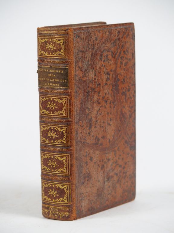 SATYRE MÉNIPPÉE de la Vertu du Catholicon d'Espagne et de la tenue des Etats de Paris, Nouvelle édition, imprimée sur celle de 1696, augm. d'une suite de nouvelles remarques (par Le Duchat). Ratisbonne, Kerner 1699. in-12, 735 pp. Basane mouchetée, dos ornée (Rel. postérieure). Les auteurs de ce pamphlet sont le cardinal de Bourbon, Nicolas Rapin, Jean Passerat et Florent Chrétien. Un frontispice semble manquer.