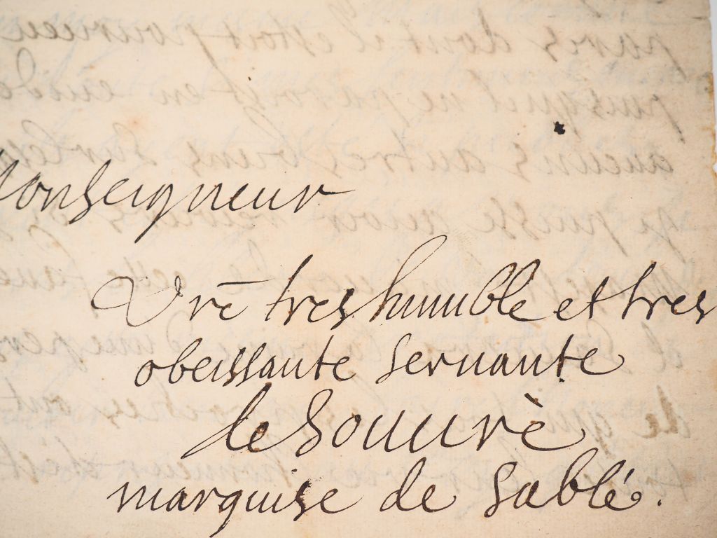 SOUVRÉ (Marquise de Sablé, Madeleine de). LETTRE AUTOGRAPHE signée. [F...