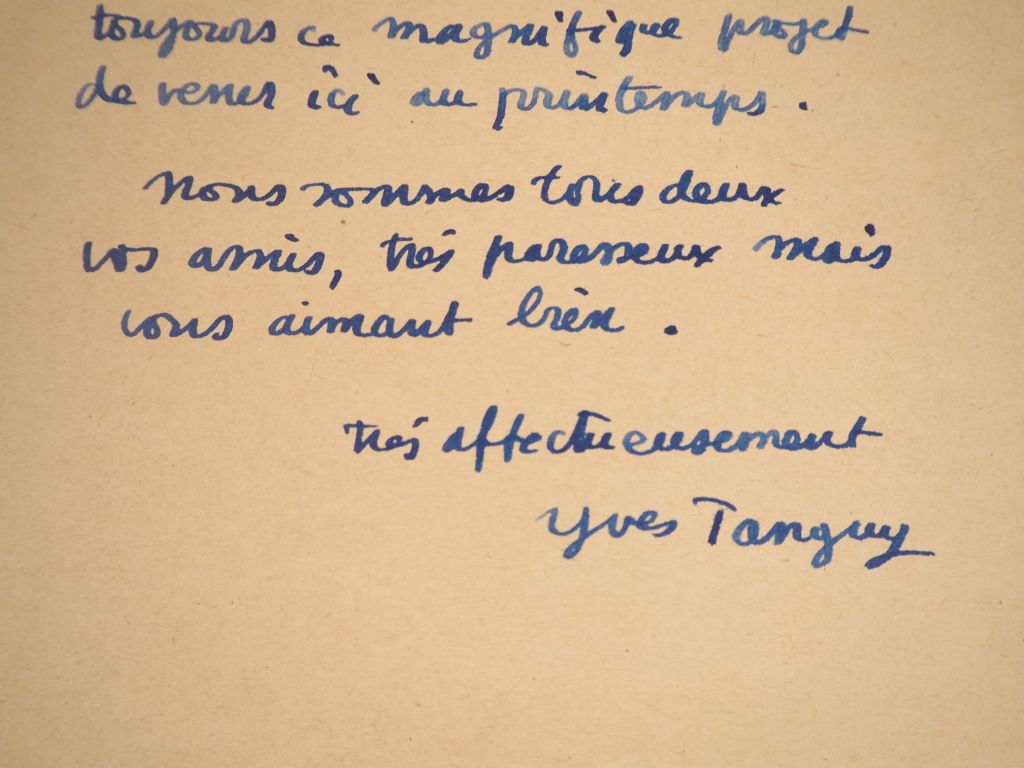 TANGUY (Yves). LETTRE AUTOGRAPHE signée adressée au couple Ducellier. ...