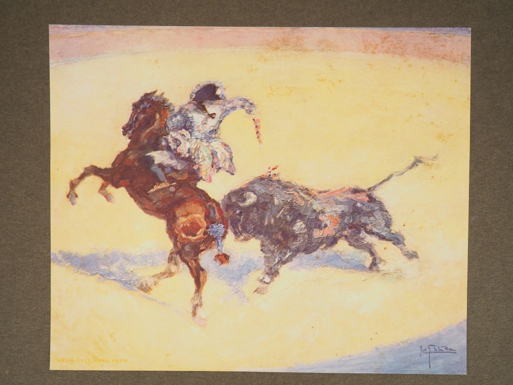 TAUROMACHIE. LA PENA (José G. de). El toreo de hoy. Le "toreo" d'aujourd'hui. Texte de Camille Mauclair. Paris, Ed. de la Bonne Idée. 1928. in-folio, chemise cartonnée à rabats. 20 planches en héliochromie d'après les peintures de J.G. de la Pena. Tirage : 1000 ex. num.