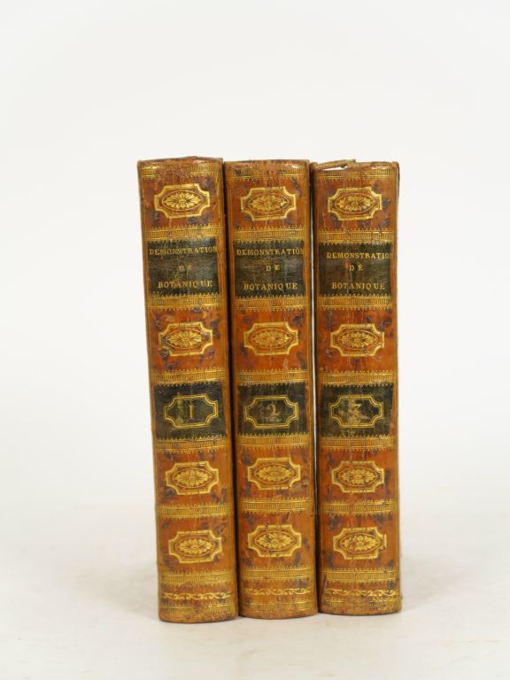 TOURNEFORT (J Piton de). - Démonstrations élémentaires de botanique. Troisième, édition. Lyon, Bruyset et Paris, Méquignon 1787. 3 vol. in-8. Rel. de l'époque, veau écaille, dos lisse, fleur et roulettes dor. , chaînettes dor. d'encadr.