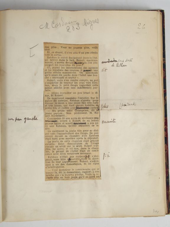 TRISTAN BERNARD. L'enfant prodigue du Vésinet. JEU D'ÉPREUVES, avec les corrections autographes de Tristan Bernard, montées en 1 vol. in-4. 138 ff. r° 1920. Bradel 1/2 maroquin brun (Rel. de l'époque). Dos frotté.